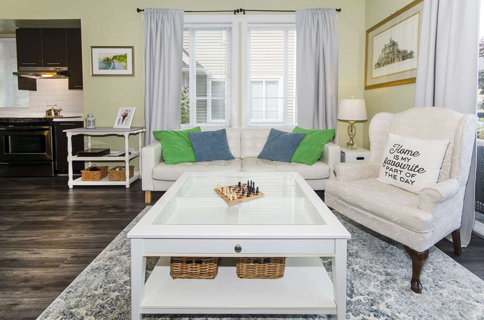Bright and spacious 3 levels end unit conveniently located in Riverwood area in a quiet, city in a park like neighborhood. 3 bedrooms, 3 bathrooms very well kept residence offer spacious living room and dining room with open concept modern kitchen, granite counters, SS appliances, upgraded flooring, new carpet, new washer and dryer. Attached garage, in-suite laundry. Kids play area & courtyards in the complex. Minutes from Costco, Save On Foods, Starbucks, Home Depot, Wal Mart. ARCHBISHOP CARNEY, TERRY FOX Sec, BLAKEBURN Elem schools. Close to public transportation, parks & trails. You will enjoy living here. Open House Sun, Sept. 15, from 2 to 4.
